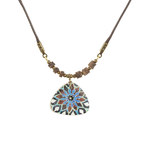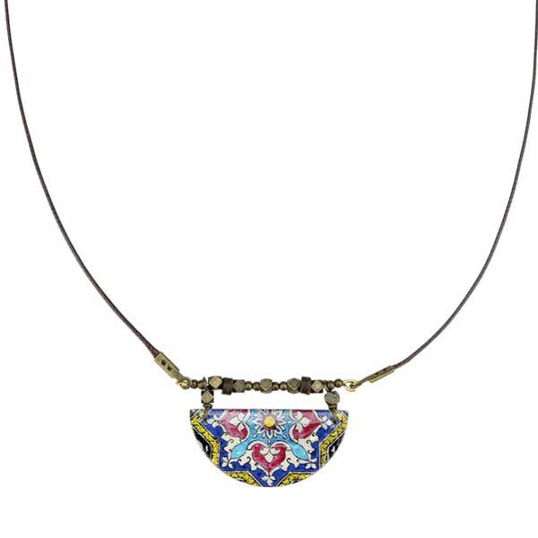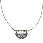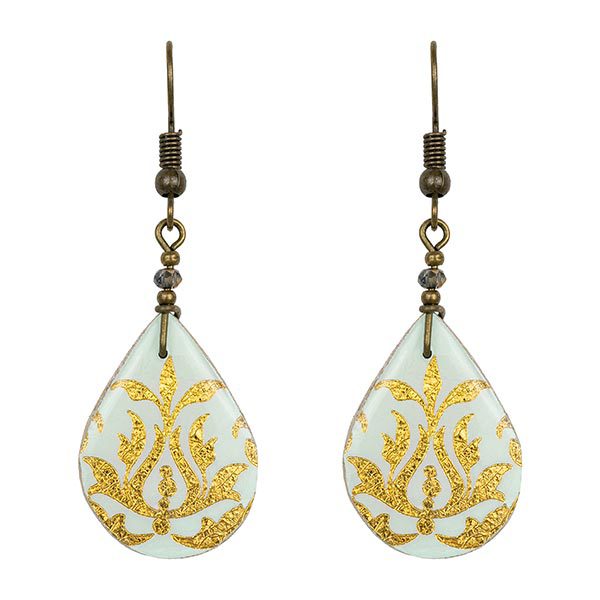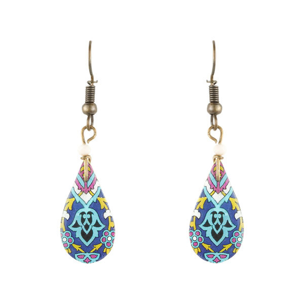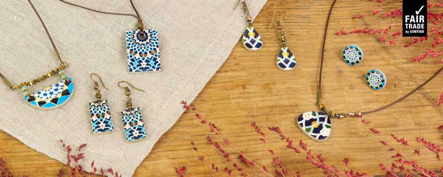 ist überaus komplex, auch im mathematischen Sinne: durch die Aneinanderreihung geometrischer Formen werden Muster geschaffen, die sich bis ins Unendliche fortführen lassen. Die typischen leuchtenden Blau- und Türkistöne symbolisieren den Himmel und sind in den Moscheen und somit auch auf den Schmuckstücken besonders häufig zu finden.
