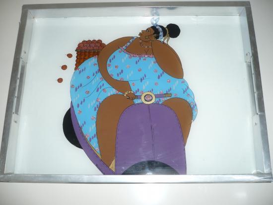 wurde zum ersten Mal 1980 im Senegal aus Holz (leere Teekisten) und Dosenblech von verschiedenen, recycelten Getränkedosen oder Fehldrucken von Dosenblech hergestellt. Innen ist er mit Comics oder alten Zeitschriften ausgestattet. Der Tragegriff stammt von einem alten Akten-Koffer. Da er komplett in Handarbeit und mit einfachen Hilfsmitteln hergestellt ist, ist er nicht zum Tragen von schweren Sachen geeignet.