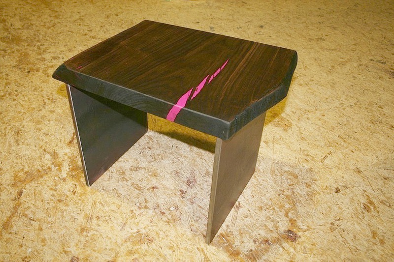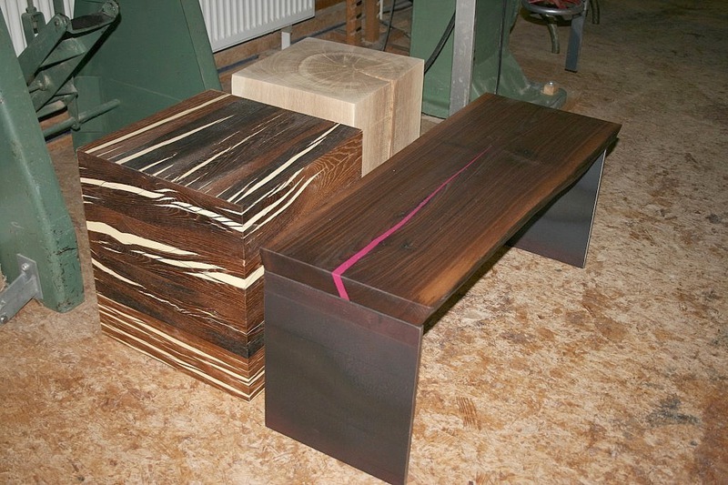 • die Trockenrisse ausgegossen mit buntem Epoxidharz