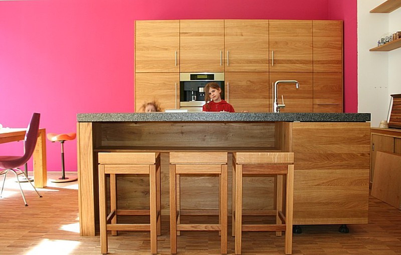 Wohnküche Erle mit Schwarzstahl