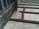 Tisch, Bett und Regal aus Multiplex sind aufeinander abgestimmt. Zwei gelochte Multiplexplatten werden an Wand und Decke montiert. Rundhölzern, die ins Lochraster des Regals gesteckt werden, ermöglichen eine variabe Anordnung der Einlegeböden. Schwarzer Kautschuk gewährleistet die Rutschfestigkeit. Das im ausgeklappten Zustand 1.40m breite Bett wird tagsüber zur bequemen Sitzgelegenheit.