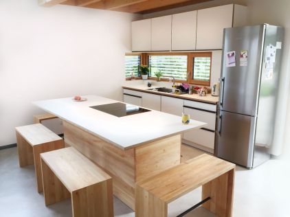 Mit einer Massivholzküche von t2 entscheiden Sie sich für hervorragende handwerkliche Material- und Verarbeitungsqualität sowie maßgeschneiderte Lösungen nach Ihren individuellen Vorstellungen und räumlichen Möglichkeiten. Fast alles ist möglich durch unsere individuelle und sorgfältige Planung in enger Zusammenarbeit mit Ihnen: die optimale Ausnutzung vorhandener Räume, Speziallösungen für Nischen und Ecken, Korpus-Maße in Höhe, Tiefe und Breite auch außerhalb der Norm, Hochschränke mit Stauräumen, Schubläden mit Vollauszügen und gedämpfen Rückeinzügen, Schubläden auch in den Sockelbereichen, moderne Beleuchtungstechnik, Arbeitsplatten aus Naturmaterialien wie Holz, Keramik, Naturstein, Linoleum oder Komplett-Edelstahl-Lösungen.