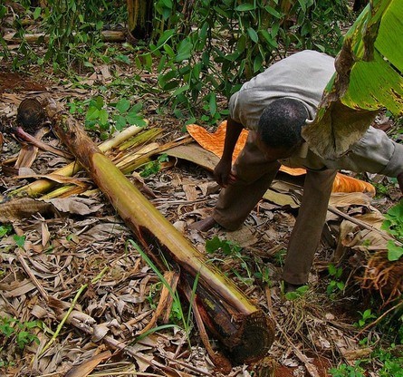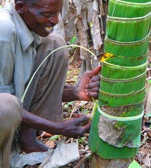 Kein Baum stirbt bei der Ernte seiner Rinde. Ähnlich bei einer Korkeiche wird der Baum zunächst entrindet. Um eine Austrocknung zu vermeiden, erhält der Baum anschliessend einen Verband aus Bananenblättern, damit die Rinde binnen etwa einen Jahres nachwächst. Die Rinde wird nach der Ernte kurz gekocht. Anschließend wird sie ausschließlich in Handarbeit mit Holzhammern breit, dünn und weich geschlagen, bis daraus allmählich das Rindentuch entsteht. Dieser Vorgang wird tagelang wiederholt.