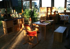 Unser Preisbeispiel im Bild: "Der Leichte" in keilgezinkter Buche