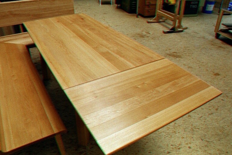 Für die Fertigung dieses Massivholztisches mit Ansteckplatte verwendeten wir sorgfältig ausgesuchte Buche. Das markante Bild des Holzes gibt dem Tisch die individuelle Ausstrahlung.